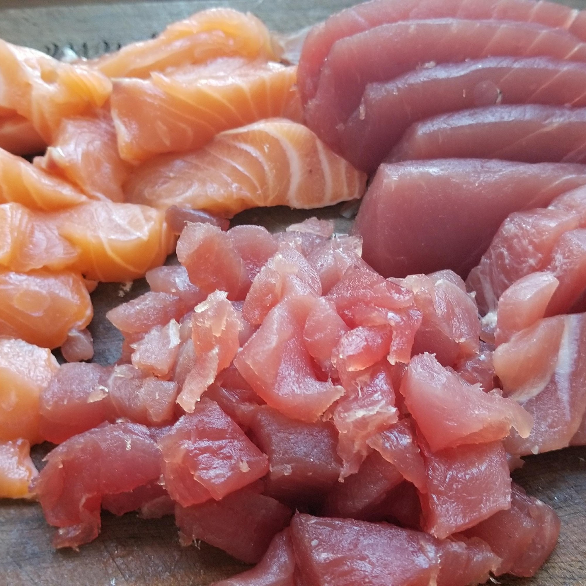 I cut some thin-ish sashimi pieces, and also diced some up into a mince.